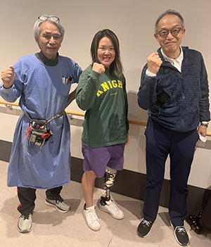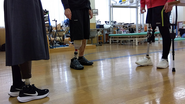 「体重を義足へかけてみて」「断端部(切断した足の先端)は痛みますか?」