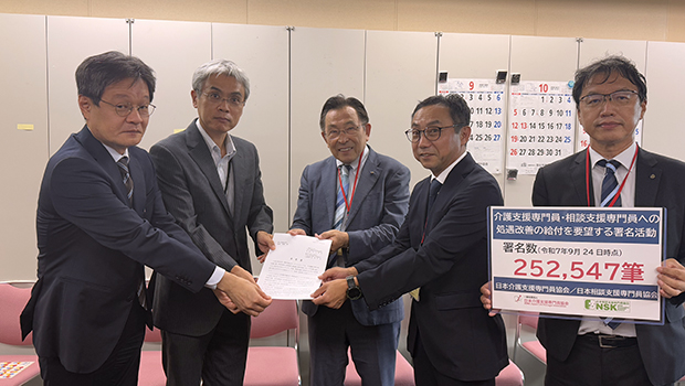 同日に厚労省を訪れた両団体は9月24日までに処遇改善に賛同する署名が25万2547筆に上ったことを報告した。厚労省は黒田秀郎老健局長と野村知司障害保健福祉部長らが対応。黒田局長は今後も専門性の高い人材が地域で必要との認識を示した。