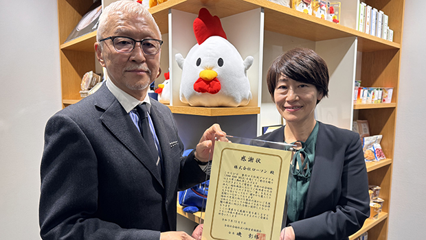 同日、ローソン本社(東京都品川区)を訪れた経営協の磯彰格会長は「今回の取り組みは普段から社会課題の解決に取り組んでいる我々にとって大きな励みとなった」と述べた。