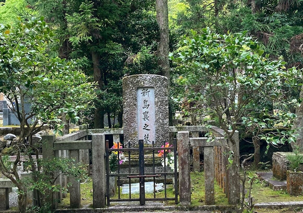 連休の谷間、5月2日の昼下がり。神社を左手にして、標高183メートルの若王子山を登った。約30分で山頂へ。青葉、若葉がきらめく、冷気に支配された空間。そこに、妻の八重(1845~1932)とともに、新島襄(1843~90)が眠っていた。