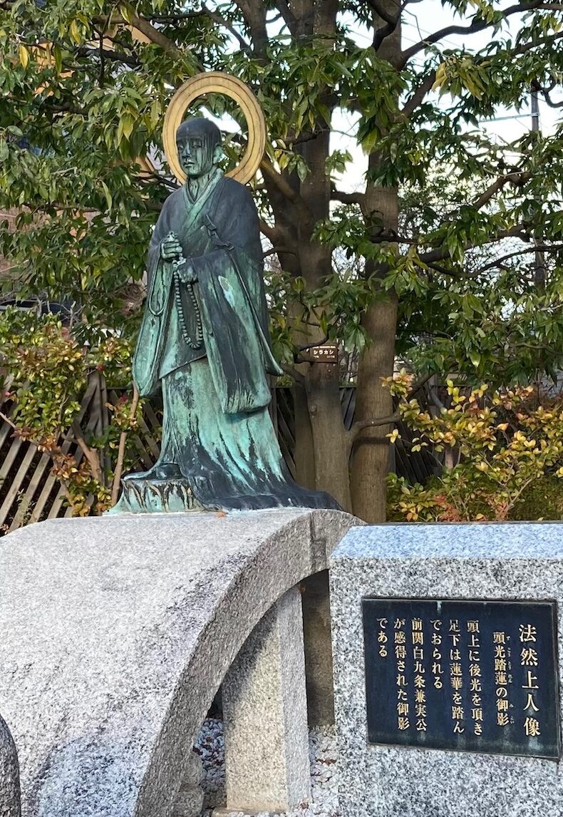 法然上人像。頭上に後光をいただき、蓮華を踏んでいる