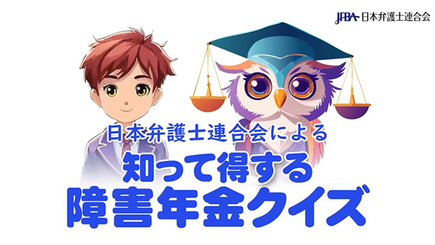 日本弁護士連合会(渕上玲子会長)は、障害年金に関する取り組みを紹介するユーチューブ動画(11分33秒、手話通訳あり)を公開した。年金は高齢者が受け取れるものと思われがちだが、ケガや病気で障害が残ったときに障害年金が受け取れること、その条件などについてクイズ形式で解説。弁護士が障害年金の申請をサポートし、不支給とされた事例でも法に基づいて検討することなども紹介している。