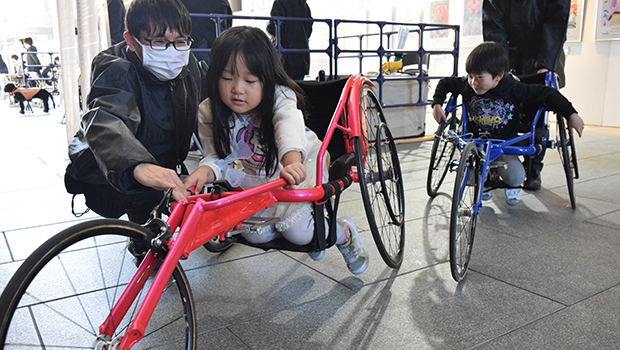 ワークショップでは、障害者が福祉事業所で制作している木製スプーンを実際に作ってみたり、パラ陸上で使われているレーサータイプの車いすを試乗できたりするコーナーなどがあり、来場者は自由に体験した。また、大阪・関西万博で話題を呼んだ、視覚障害者の移動を支援する自律型ナビゲーションロボット「AIスーツケース」もあり、体験した小学3年の男子は「これならしっかり誘導してもらえると感じた」と話した。