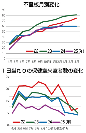 「先生が1人で抱えていた問題を、いろんな人が助けてくれる。先生はホッとする。親も安心する。不登校や保健室の来室が減ったのは、学校の『気』が変わったからだと思います。3年前まで『教育困難校』と言われていましたが、今は平和で落ち着いています」